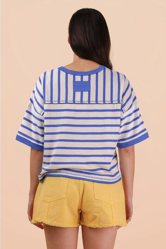 Oversized Stripe Casual Comfy Knit Top White/Blue