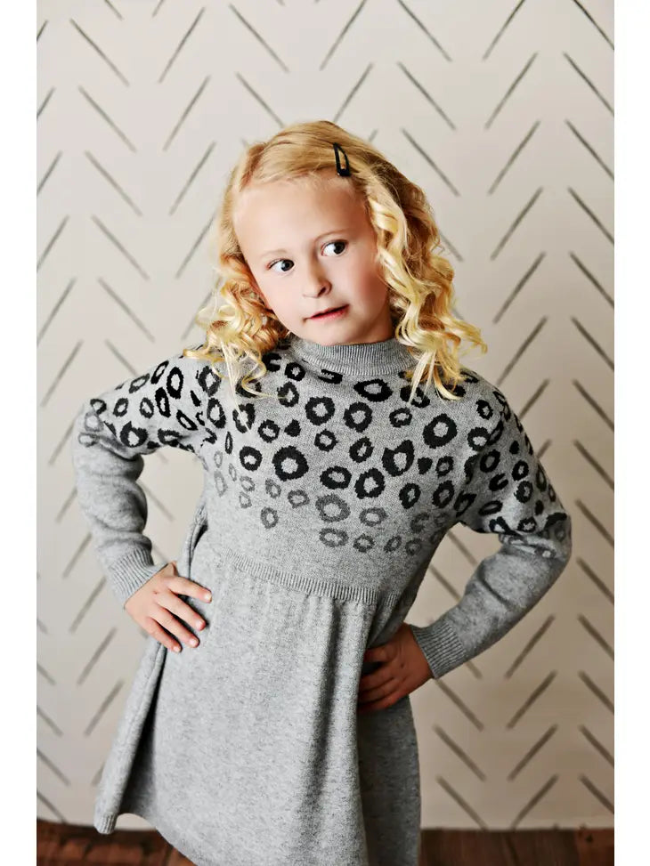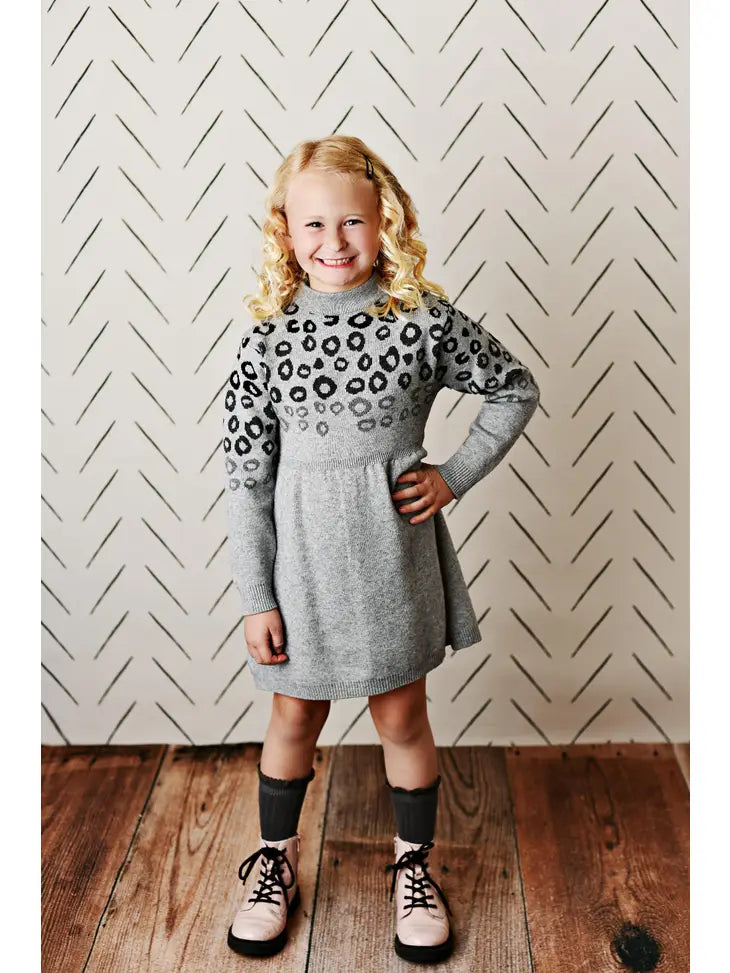 Kids Gray & Black Leopard Print Long Sleeve Sweater Dress