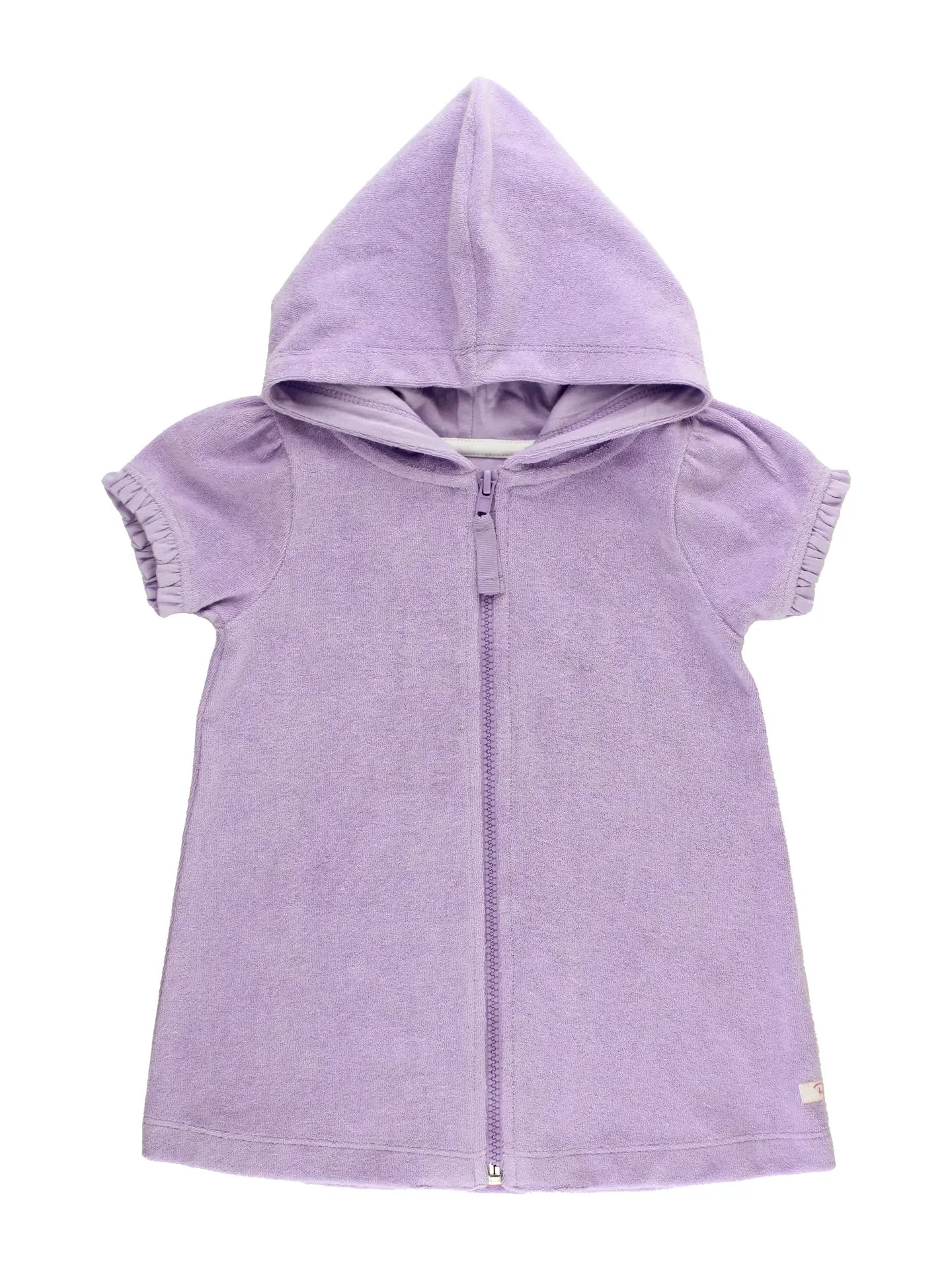 She'll be ready for all-day play in this adorable swimsuit cover-up. The full zip terry style is comfortable and flowy for your little one to throw on between swims. a functional hood keeps her cozy, and ruffle details add a girly touch. The gorgeous purple shade is perfect for adding a pop of color into an outfit!