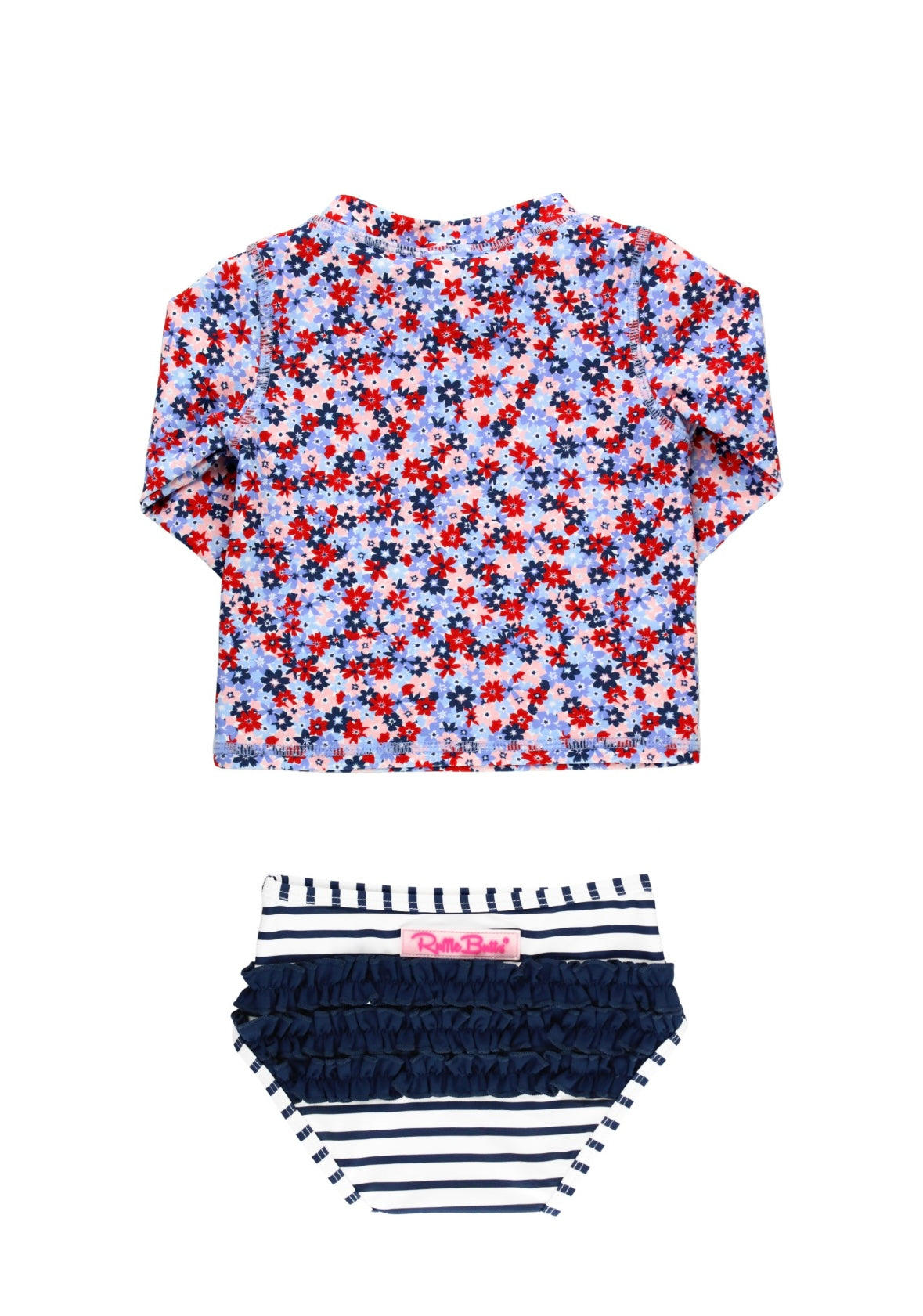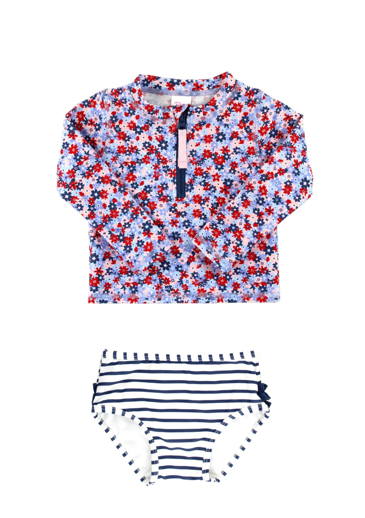 Long Sleeve Zipper Rash Guard 2-Piece Red White & Bloom