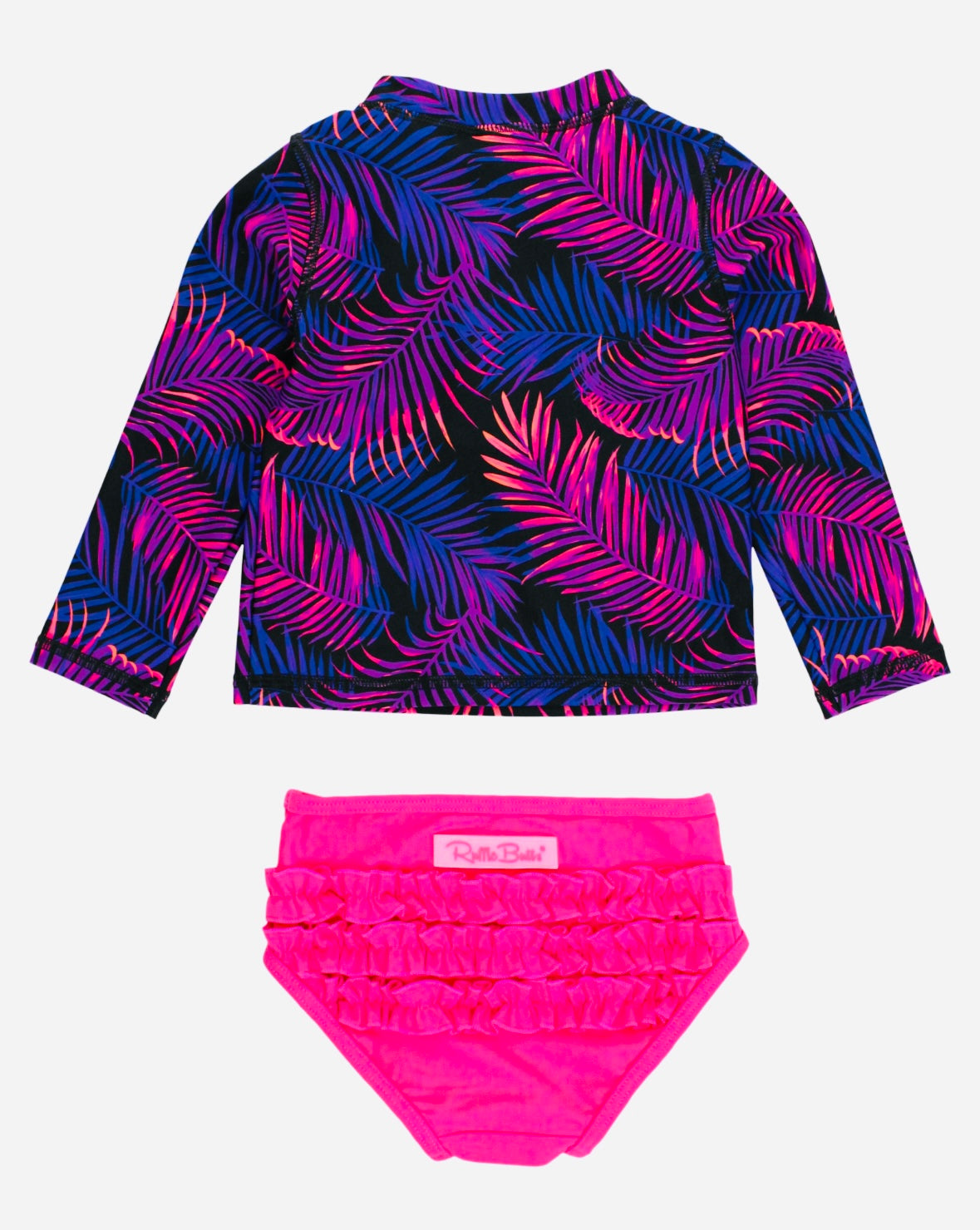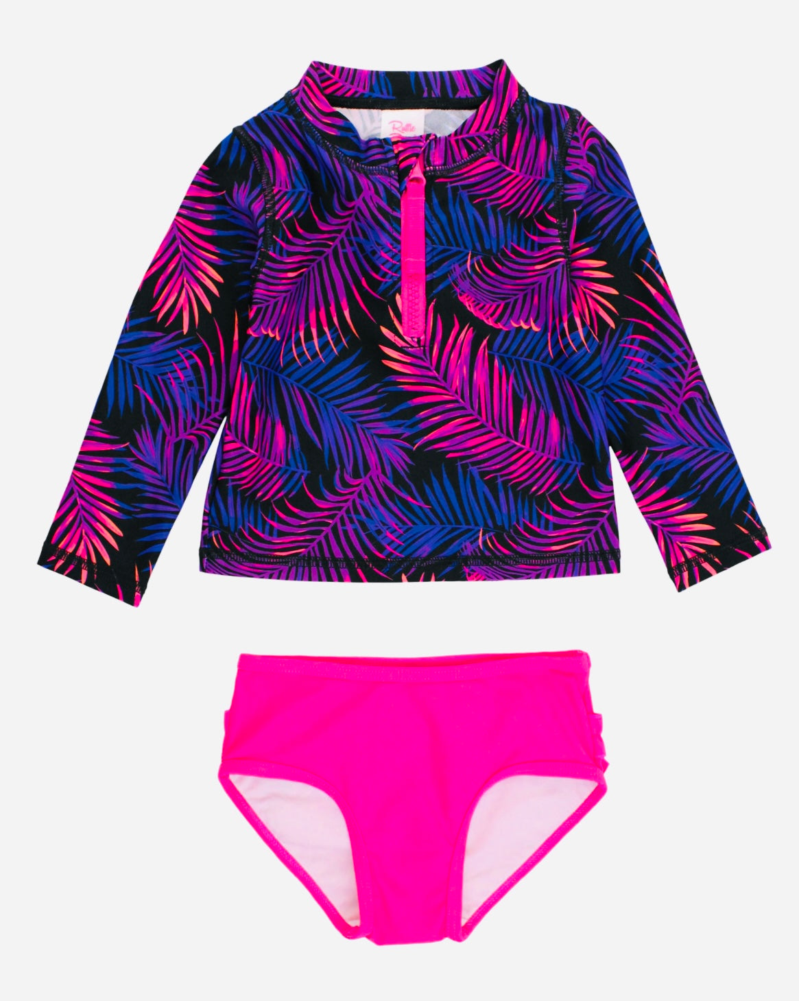 Long Sleeve Zipper Rash Guard 2 Piece Marine Glow Swimsuit