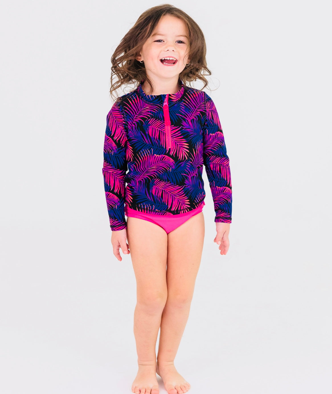 Keep your little princess safe and protected all day in the sun with this Long Sleeve Zipper Rash Guard Bikini. This bikini is made with sun protected fabric that provides comfort for an enjoyable day in the sun, is fully lined and includes a front zipper.