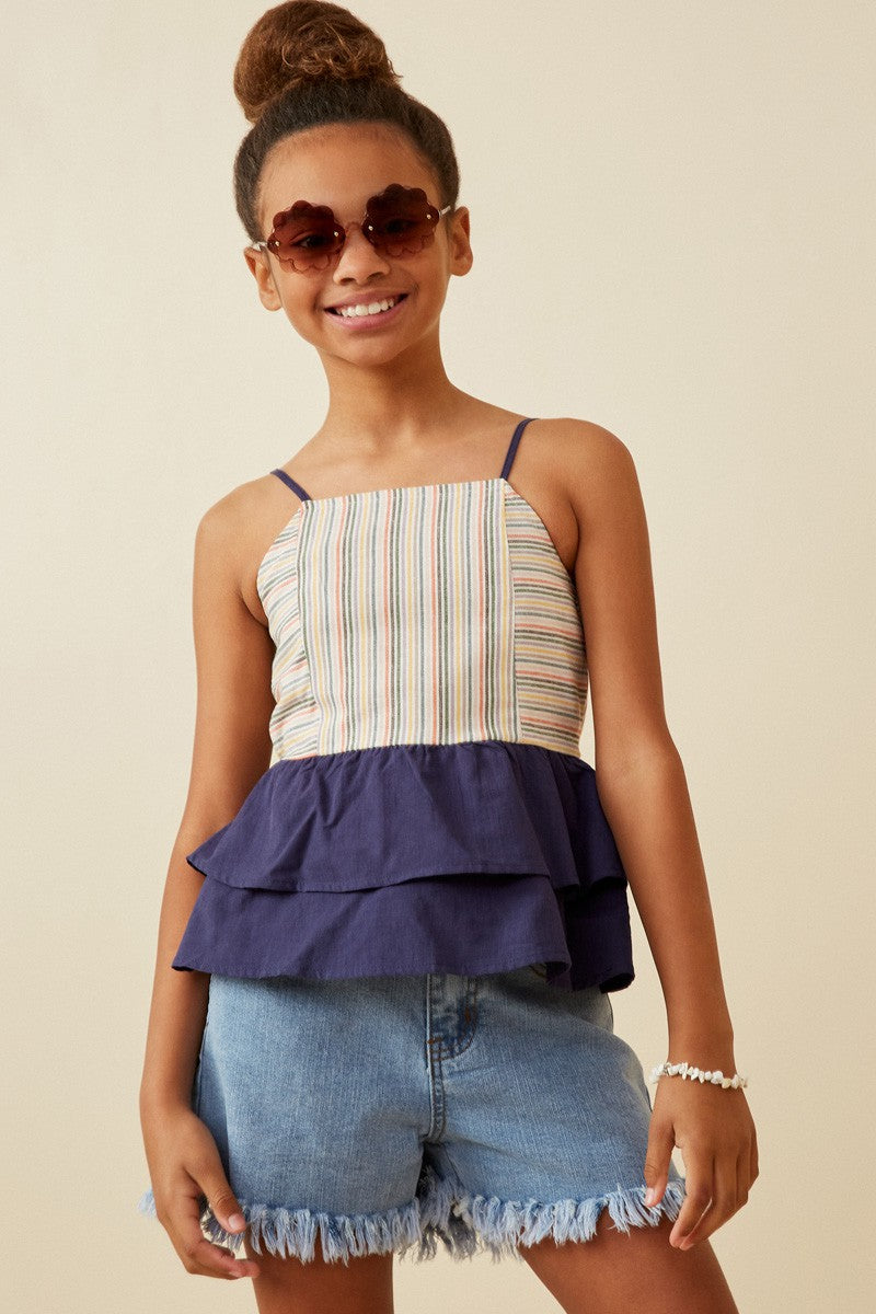 Girls Multi Stripe Colorblock Peplum Tank