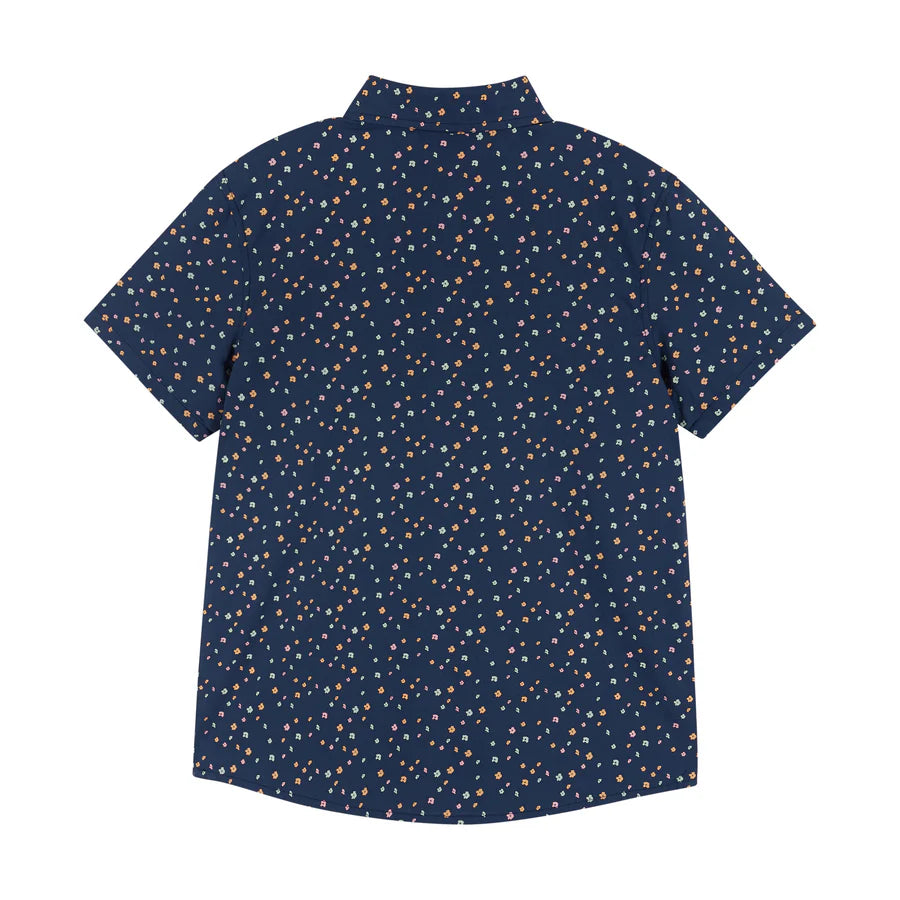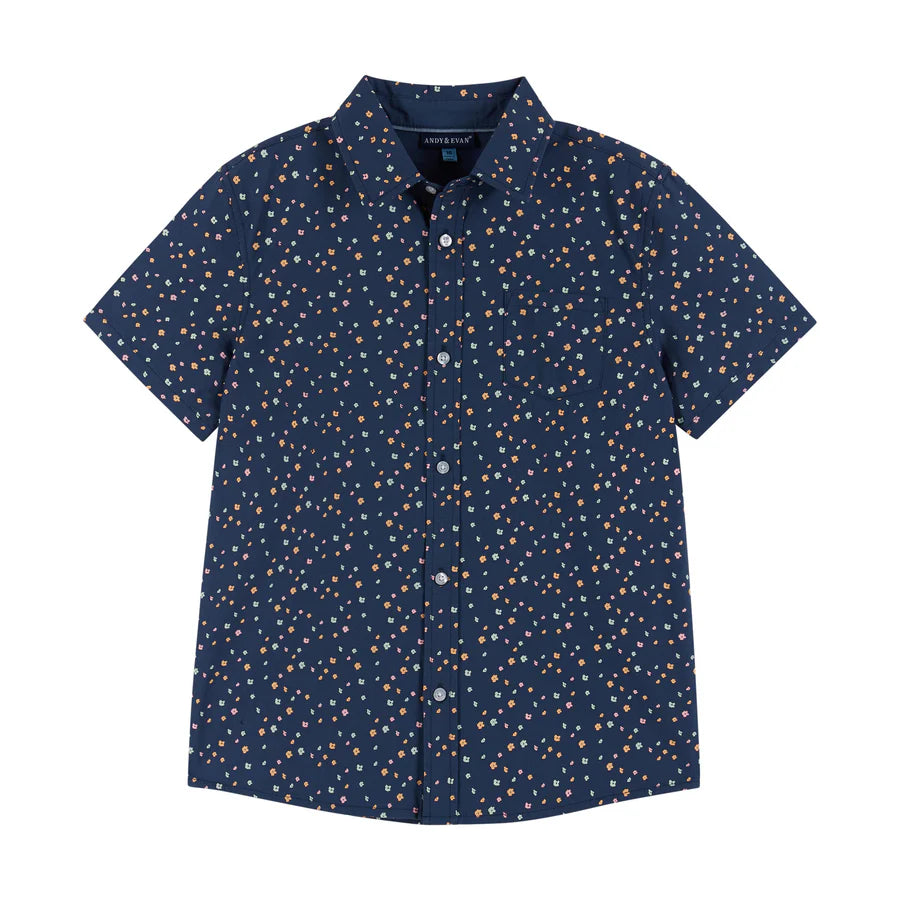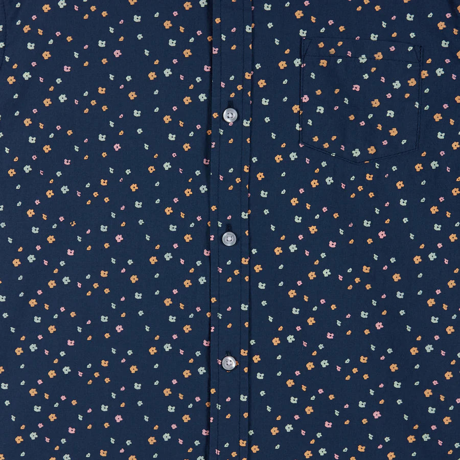 Add a touch of charm to your little one's wardrobe with this stylish Navy Floral Print Buttondown Shirt. Featuring a simple floral pattern and classic buttondown design, this shirt is perfect for any occasion. Crafted from soft and durable fabric, it will keep them comfortable and looking sharp.