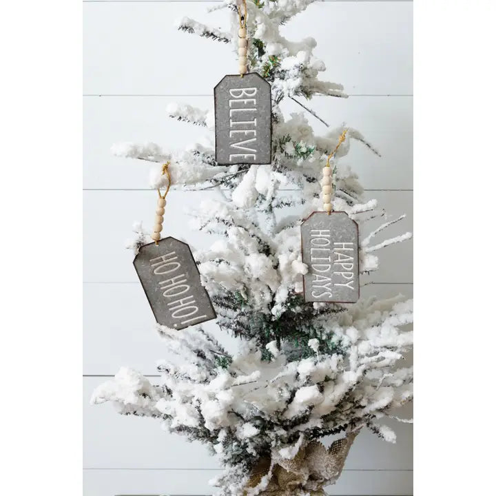 Ornaments - Galvanized - Believe, Happy, Ho Ho Ho