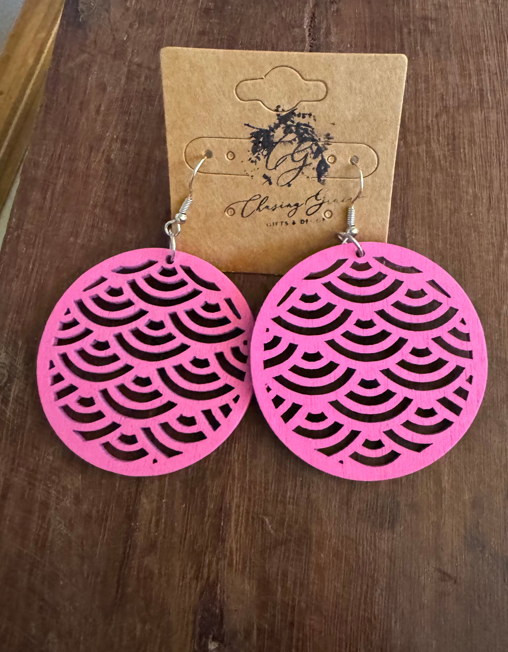 Pink Wood Wave Earrings