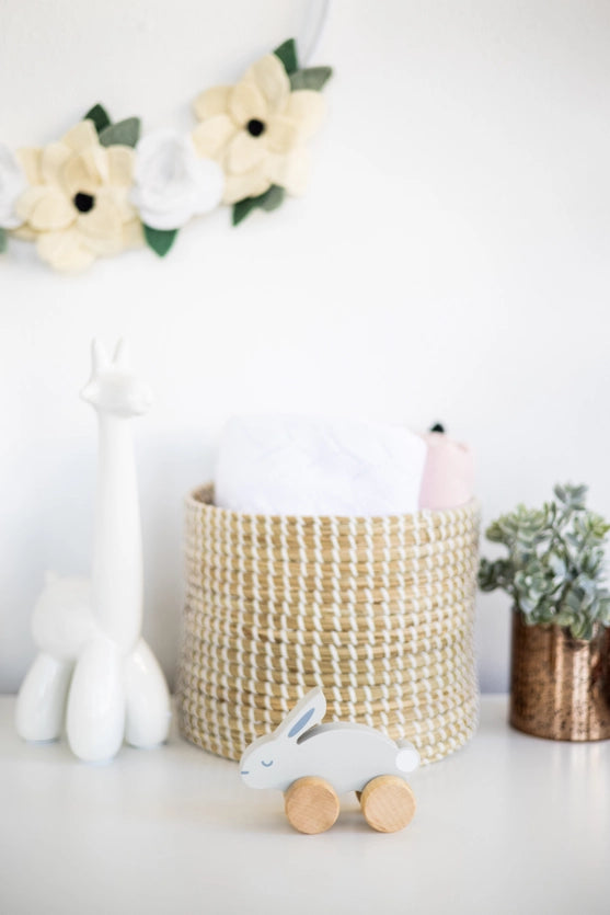 • This fun push and roll baby toy will help parents and their little ones create special memories they will share and love for years to come! And when playtime is over, this wooden bunny makes the perfect nursery décor accessory!